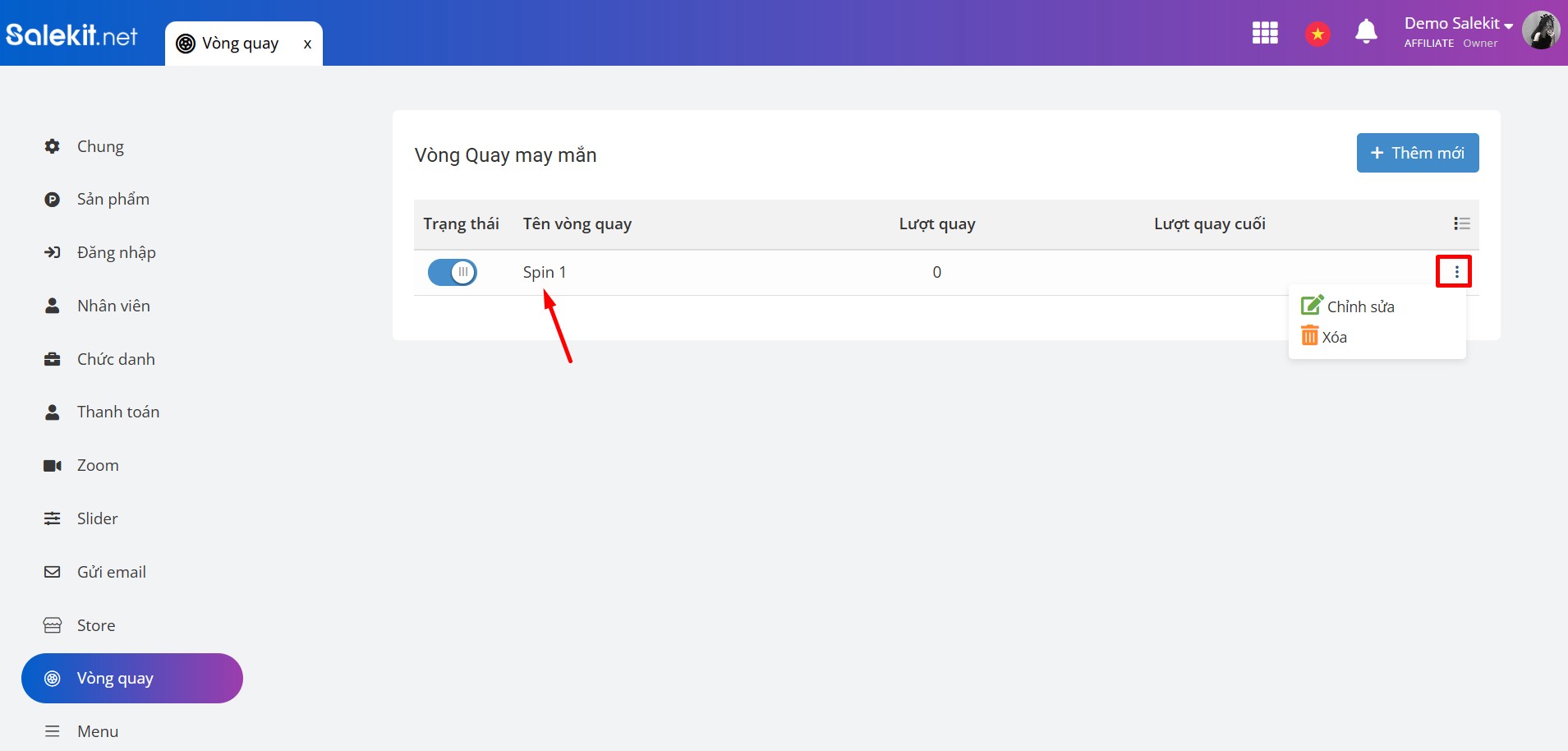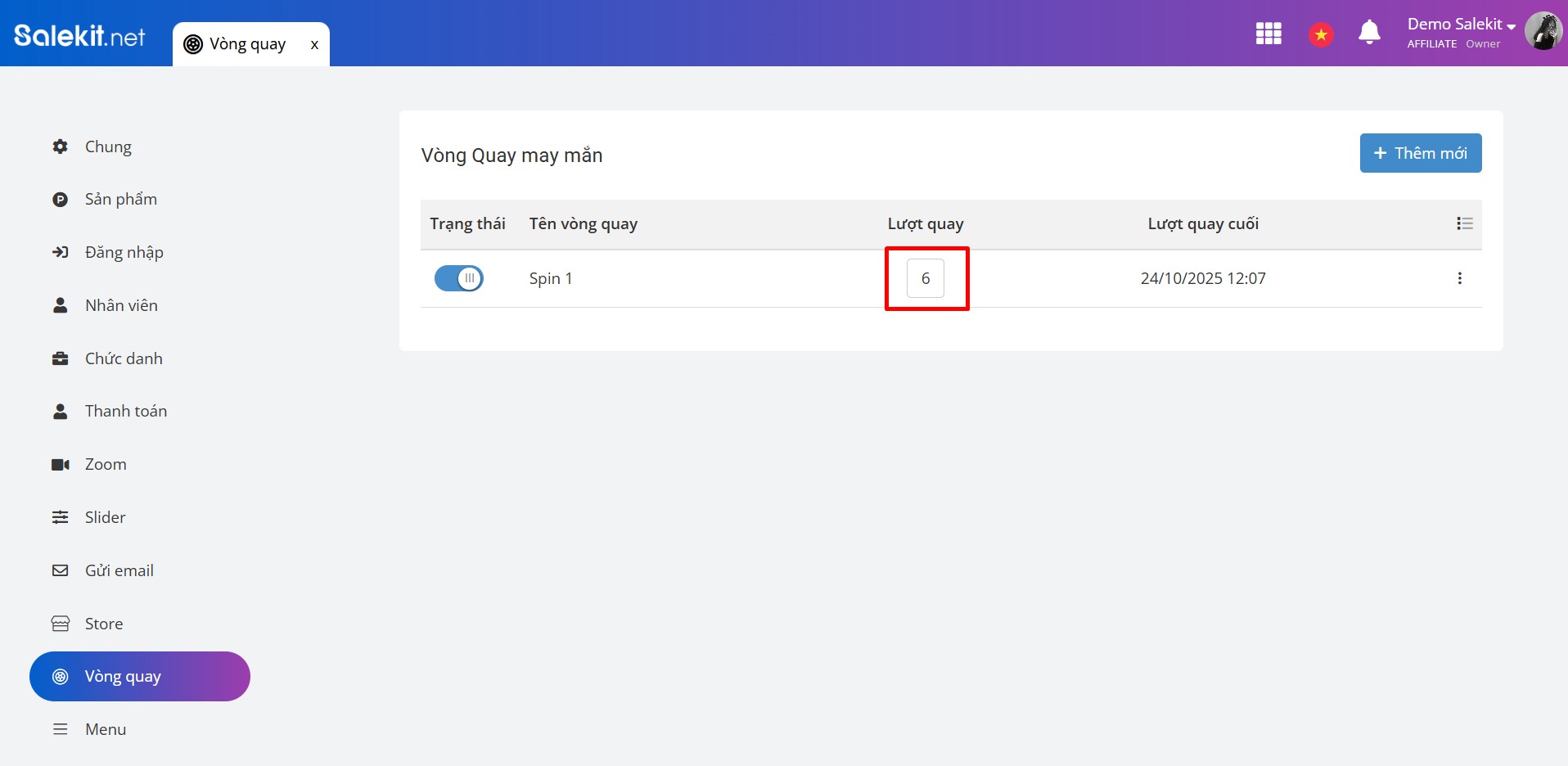 Như vậy bạn đã hoàn tất tạo và quản lý vòng quay may mắn trên Salekit.